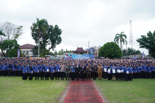 Ribuan tenaga honorer mengikuti prosesi pengukuhan PPPK paruh waktu Kabupaten OKI tahun 2025. (Foto: Asep/cimutnews.co.id)