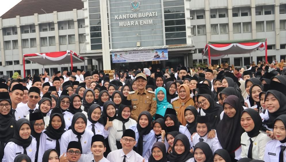 Muara Enim, cimutnews.co.id – Sebanyak 704 Calon Pegawai Negeri Sipil (CPNS) Pemerintah Kabupaten Muara Enim dari 9.583 pelamar formasi tahun 2024 diresmikan Bupati Muara Enim, H. Edison, S.H., M.Hum., yang ditandai dengan penyerahan Keputusan Bupati Muara Enim tentang Pengangkatan CPNS di halaman Kantor Bupati Muara Enim, Senin (26/05). Dalam arahannya Bupati yang hadir bersama Wakil Bupati, Hj. Ir. Sumarni, M.Si., dan juga disaksikan Plt. Kepala Kantor Badan Kepegawaian Negara (BKN) Regional VII Palembang, Prima Sepriza, S.H., M.M., menekankan agar CPNS yang terdiri dari 283 tenaga kesehatan dan 421 tenaga teknis ini mampu bekerja secara profesional dan memberikan kontribusi prositif bagi penyelenggaraan pemerintahan, terutama melaksanakan pelayanan prima bagi masyarakat.