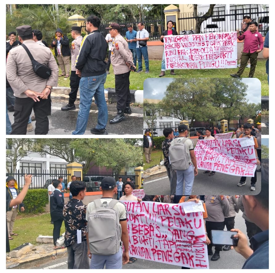 Pekanbaru,cimutnews.co.id–Jumat 19 Desember 2025 — Seram Riau kembali menggelar Aksi Jilid III di depan kantor mapolda Riau tepatnya di Jl. Pattimura Pekanbaru. sebagai bentuk desakan kepada Mapolda Riau untuk segera menindaklanjuti dugaan praktik pungutan liar (pungli) yang di lakukan oleh Kepala Cabang (Kacab) Wilayah III Dinas Pendidikan Provinsi Riau. Inisial Aldela Tambusai, sesuai dengan Surat Laporan Hasil Audit Inspektorat Provinsi Riau Nomor: 242/LATT/INSP-RIAU/IR.I/VII/2025 tanggal 22 Juli 2025