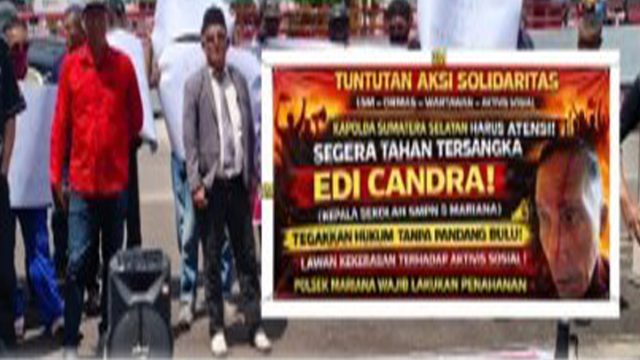 Aksi solidaritas ini digelar sebagai bentuk desakan kepada aparat penegak hukum agar segera melakukan penahanan terhadap tersangka berinisial Edi Candra, yang merupakan Kepala Sekolah SMN 5 Mariana, Kabupaten Banyuasin.