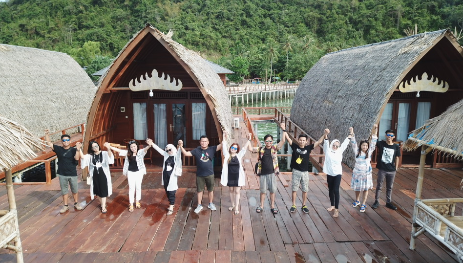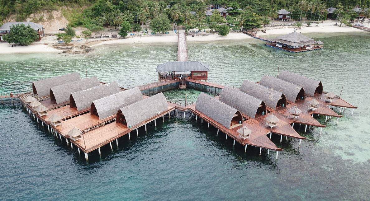 Suasana pantainya yang masih alami dijamin akan membuat Anda betah berlama-lama, di pulau ini Anda juga akan dengan mudah menemukan tempat instagramable, salah satunya jajaran villa yang berada di atas laut khas Maldives. Villa yang ada di kawasan ini dibangun dengan gaya-gaya rumah tradisional, beratap jerami dengan sebagian besar bahan material dari kayu