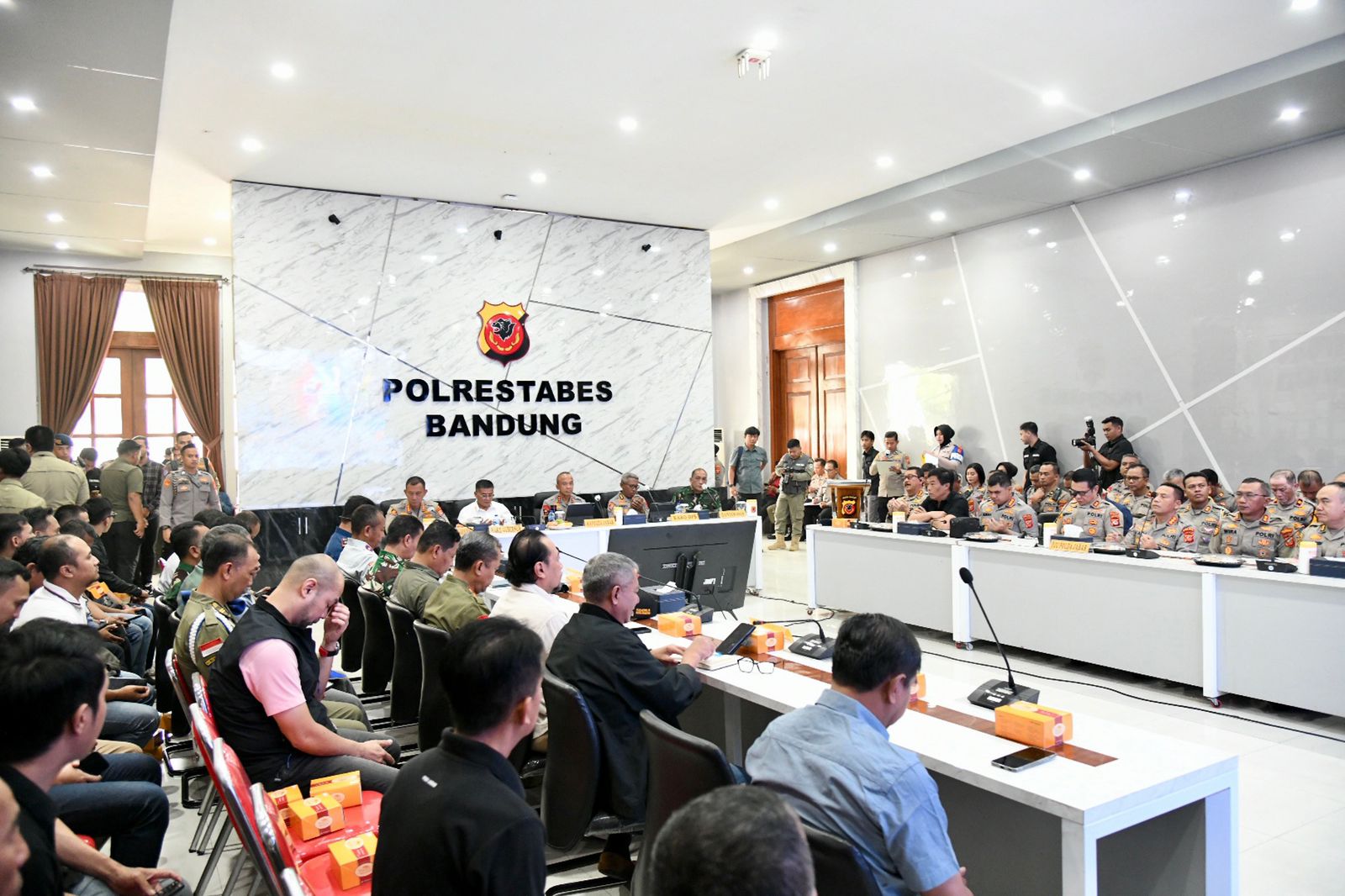 Rapat dihadiri oleh Kapolda Irjen Pol Rudi Setiawan, Kapolrestabes Bandung Kombes Pol Dr. Budi Sartono, Dandim 0618 Kota Bandung Kolonel Inf. Mohamad Iswan Nusi dan pejabat terkait lainnya.