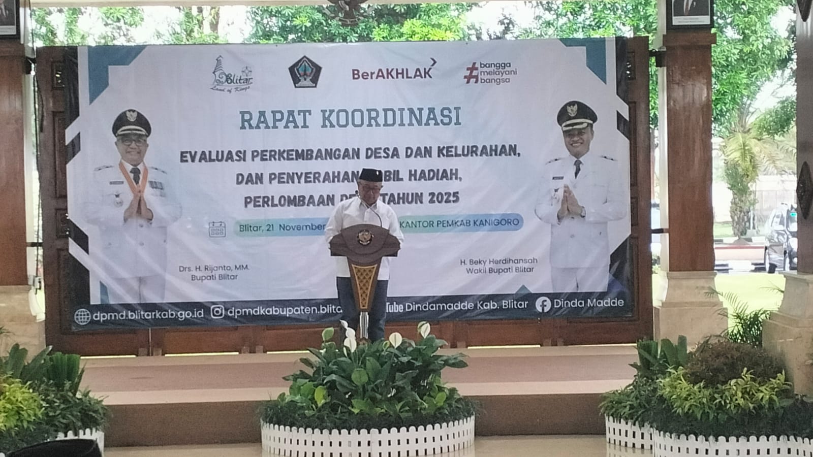 Blitar, Cimutnews co. id. – Bupati Blitar Rijanto menghadiri Rakor Evaluasi pengembangan Desa dan Kelurahan serta Penyerahan Hadiah lomba Desa tahun 2025, pada Jumat (21/11/2025) di Pendopo Sasana Adhi Praja Kanigoro Kabupaten Blitar.