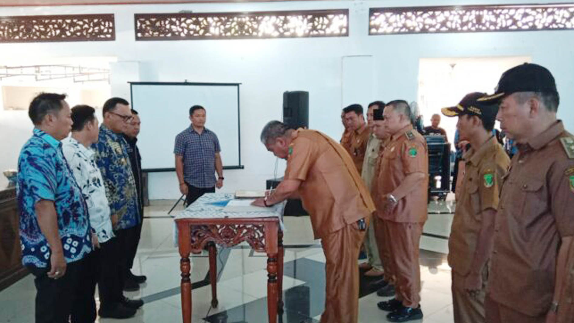 Bupati Empat Lawang H. Joncik Muhammad saat memberikan arahan dalam kegiatan Penandatanganan Fakta Integritas Kepala Desa dan pengarahan ketertiban serta keamanan desa di Kabupaten Empat Lawang, Rabu (1/10/2025).