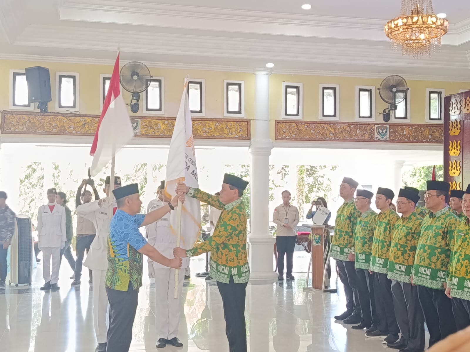 Penyerahan bendera patataka dan Sekretaris ICMI Provinsi Sumatera Selatan, Dr. Bahrul Ilmi Yakub, memberikan arahan tentang peran penting cendekiawan muslim dalam memperkuat tata kelola pemerintahan dan pembangunan daerah. (foto: eko/cimutnews.co.id)