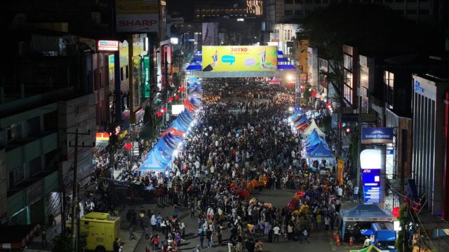 Kawasan yang biasanya padat kendaraan berubah menjadi ruang terbuka yang dipenuhi warga. Pengunjung memanfaatkan waktu untuk menikmati hiburan jalanan, kuliner, hingga berkumpul bersama keluarga.