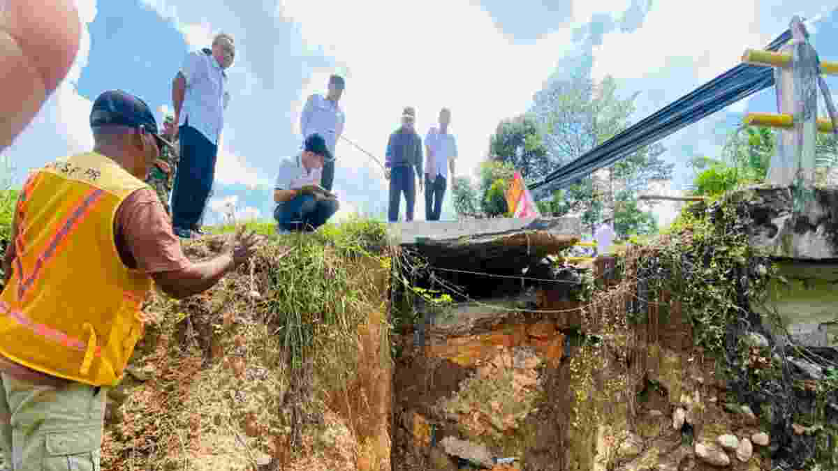 Kejadian bermula dari laporan warga yang melihat kondisi jembatan mengalami retakan dan penurunan signifikan.