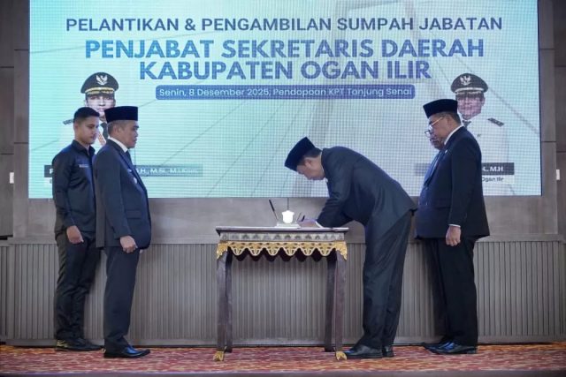 Ogan Ilir (Sumsel), cimutnews.co.id — Pemerintah Kabupaten Ogan Ilir secara resmi melantik Dicky Syailendra sebagai Penjabat (Pj) Sekretaris Daerah (Sekda) Ogan Ilir pada Senin, 8 Desember 2025. Pelantikan berlangsung di Ruang Rapat Utama Kompleks Perkantoran Terpadu (KPT) Tanjung Senai, Indralaya, dan menjadi tonggak penting dalam keberlanjutan roda pemerintahan daerah setelah H. Muhsin Abdullah memasuki masa purnatugas.