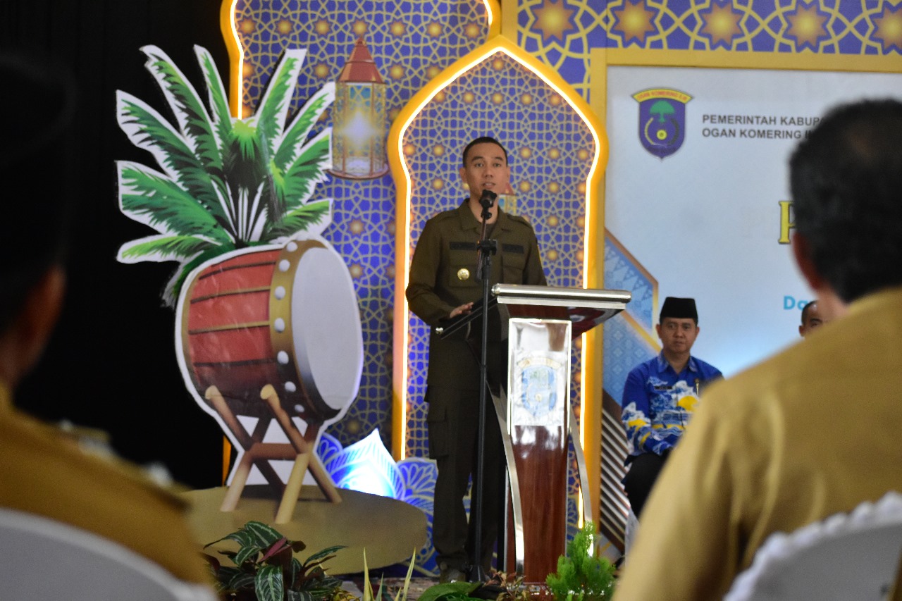Muchendi saat menyerahkan Surat Keputusan (SK) Bupati OKI mengenai besaran Alokasi Dana Desa (ADD), Dana Desa (DD), Dana Bagi Hasil Pajak, Retribusi Daerah, dan Lelang Lebak Lebung untuk Tahun Anggaran 2025 di Pendopo Kabupatenan