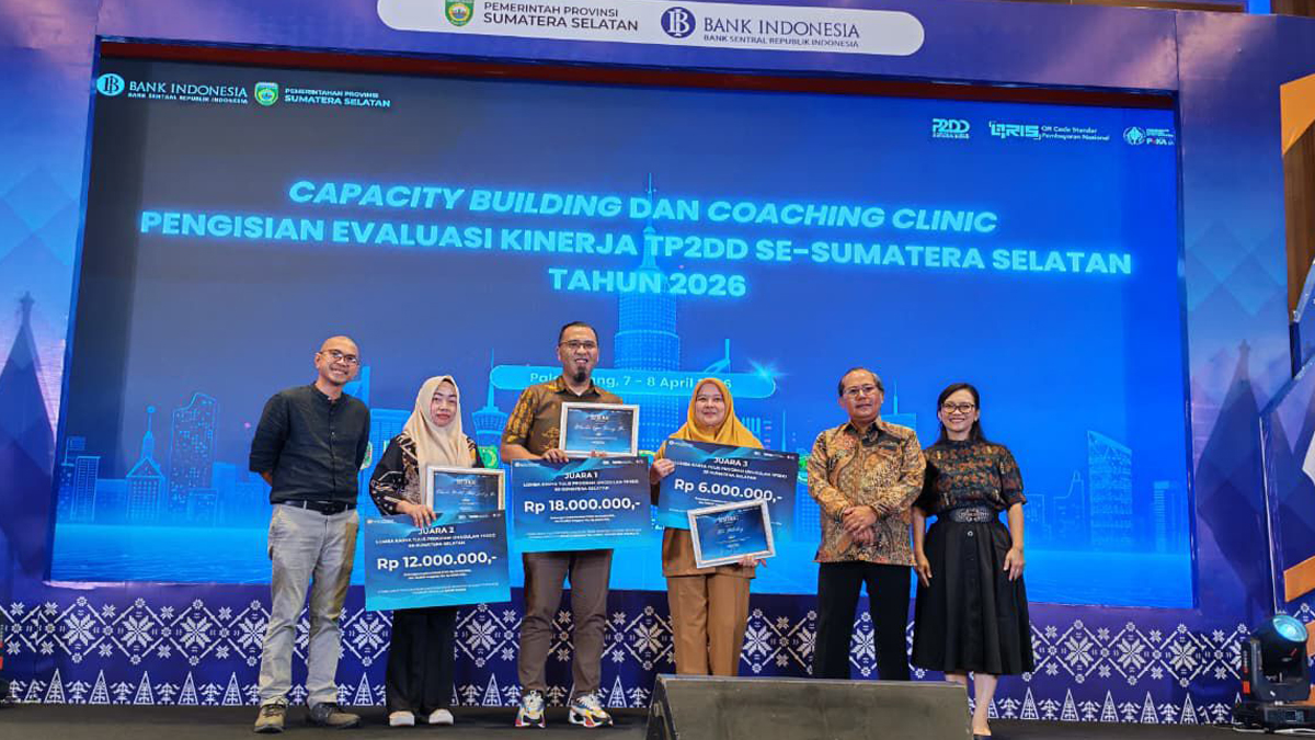 Penghargaan diserahkan oleh M. Aries Permadi dalam forum evaluasi TP2DD se-Sumatera Selatan.