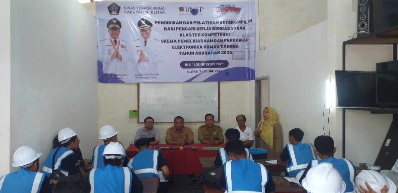 PLT Kepala Disnaker Kabupaten Blitar, Nanang Adi, menyampaikan, hari ini adalah penutupan dari pelatihan kompetensi untuk skema klaster perbaikan elektronika rumah tangga jadi bisa memberikan kompetensi atau kemampuan pada peserta pelatihan.