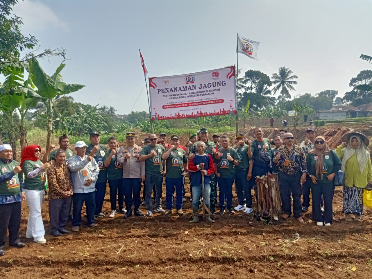 Upaya mewujudkan kemandirian pangan nasional mendapat dukungan baru melalui penanaman perdana jagung hibrida oleh Himpunan Masyarakat Tani Nusantara Merah Putih (HMTN-MP).