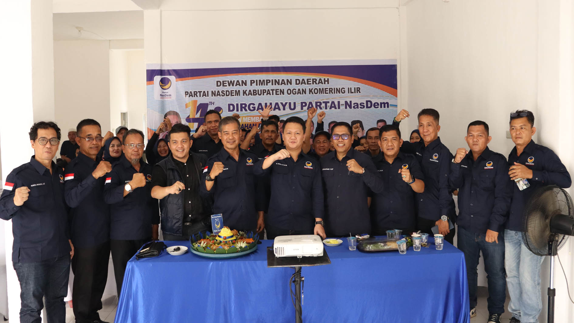 Ogan Komering Ilir, cimutnews.co.id – Dewan Pimpinan Daerah (DPD) Partai NasDem Kabupaten Ogan Komering Ilir (OKI) memperingati Hari Ulang Tahun (HUT) ke-14 Partai NasDem dengan penuh kebersamaan dan semangat perubahan. Acara digelar di Aula Kantor DPD Partai NasDem OKI pada Selasa (11/11/2025) dan berlangsung secara serentak se-Indonesia melalui sambungan virtual zoom meeting bersama seluruh jajaran DPP, DPW dan DPD Partai NasDem.