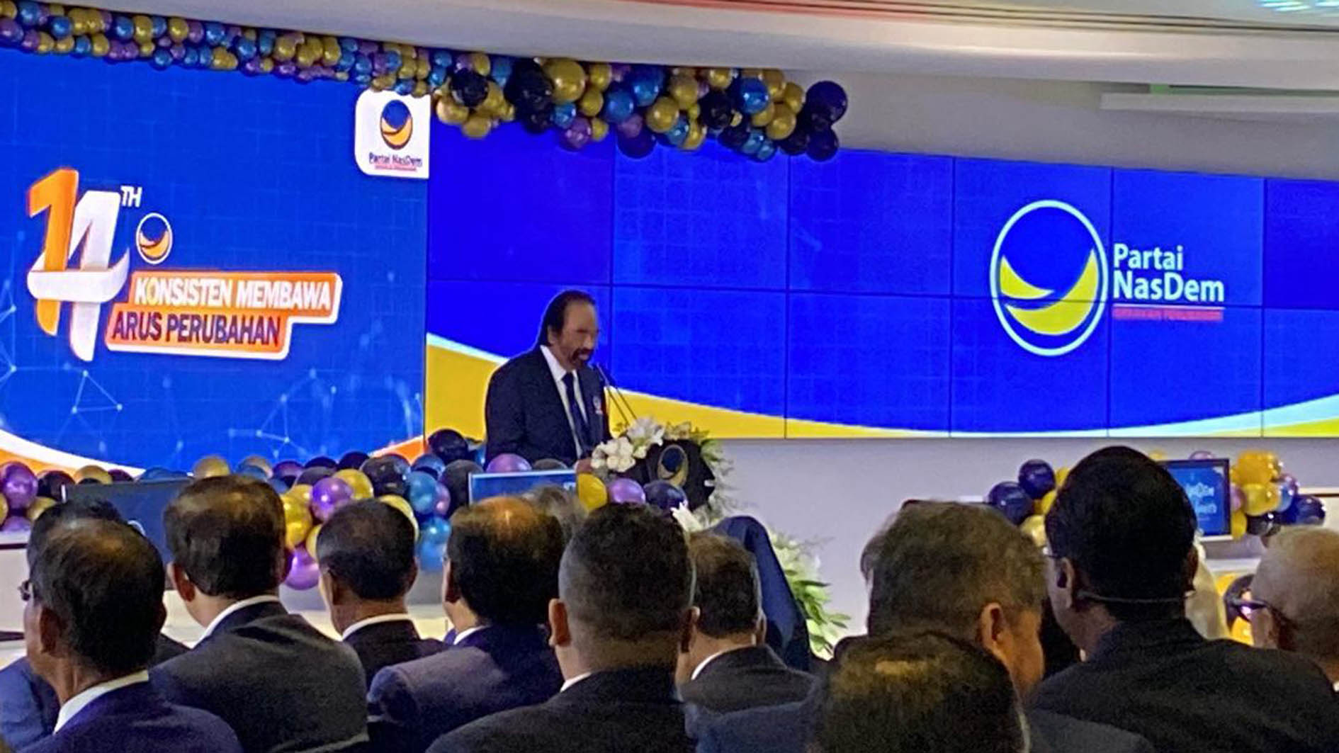 “Kita semua patut bersyukur. Tanpa terasa, perjalanan Partai NasDem telah mencapai usia ke-14 tahun — sebuah perjalanan panjang dengan misi besar, yakni Gerakan Perubahan dan Restorasi Indonesia,” tutur Surya Paloh dalam pidatonya.