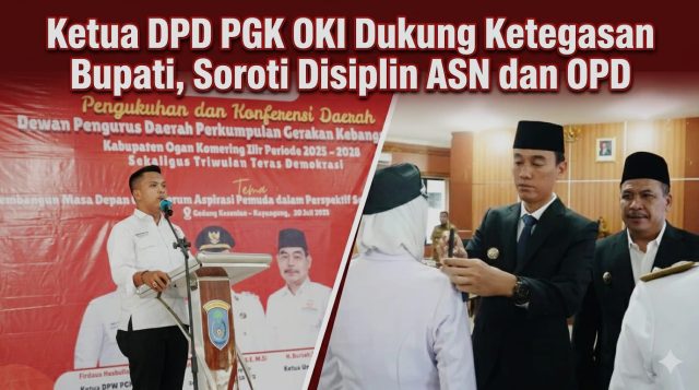 Ogan Komering Ilir, cimutnews.co.id – Ketua DPD PGK Kabupaten Ogan Komering Ilir (OKI), Rivaldy Setiawan, SH, menyampaikan dukungannya terhadap ketegasan Bupati OKI, Muchendi Mahzareki, terkait penegakan disiplin Aparatur Sipil Negara (ASN) usai pelantikan 115 pejabat di lingkungan Pemerintah Kabupaten Ogan Komering Ilir beberapa waktu lalu.