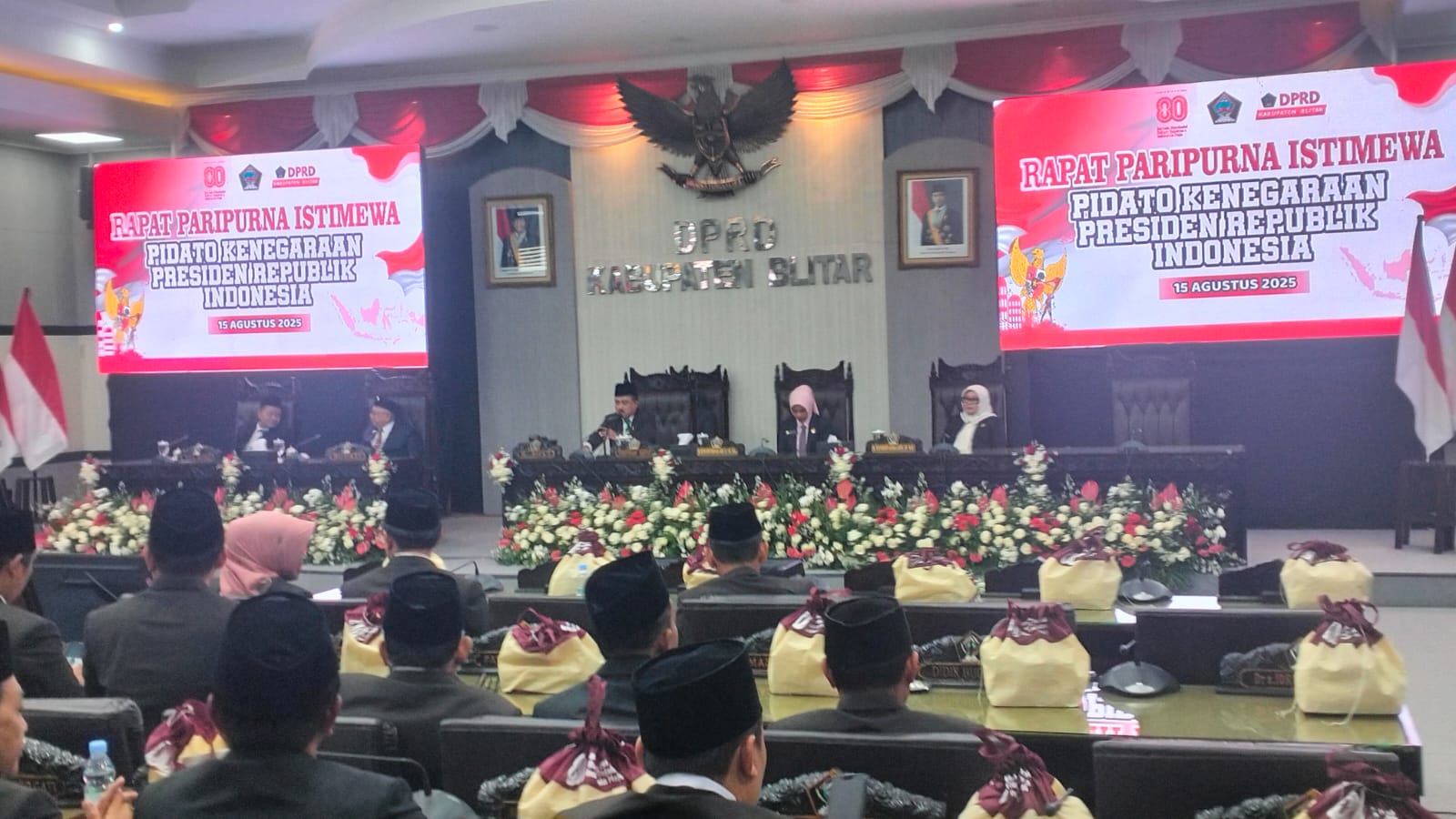 Dalam rangka menyambut Hari Ulang Tahun ke-80 Kemerdekaan Republik Indonesia, Dewan Perwakilan Rakyat Daerah (DPRD) Kabupaten Blitar menggelar Rapat Paripurna Istimewa dalam rangka menyambut Hari Ulang Tahun ke-80 Kemerdekaan Republik Indonesia, Jumat ( 15/8/2025 )