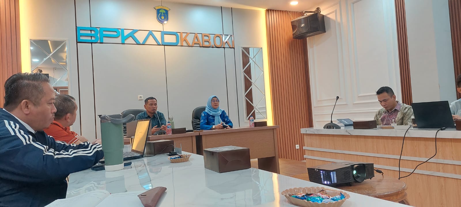 Ketua Forum CSR Kabupaten OKI, Marhaili Sutomo, S.T., M.Kom., memimpin rapat perdana pasca Musda bersama jajaran pengurus baru di Ruang Rapat BPKAD OKI.