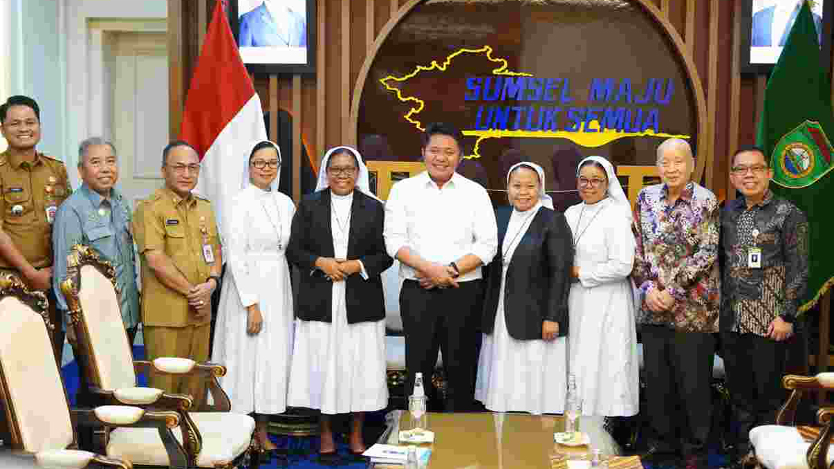 PALEMBANG, cimutnews.co.id — Gubernur Sumatera Selatan Herman Deru apresiasi 100 tahun Suster Charitas saat menerima audiensi panitia peringatan satu abad Kongregasi Suster Santo Fransiskus Charitas di Ruang Tamu Gubernur, Selasa (7/4/2026).