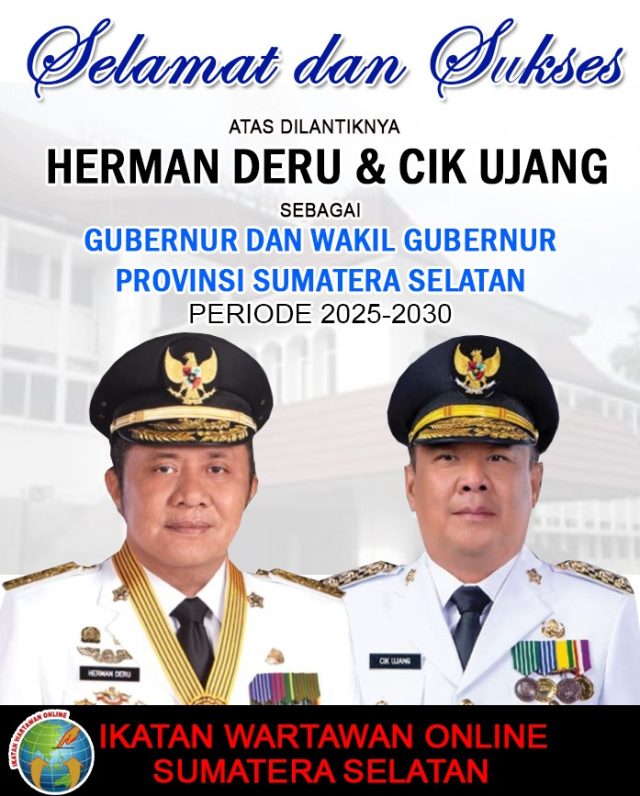 PALEMBANG, cimutnews.co.id. – Ikatan Wartawan Online (IWO) Sumatera Selatan menyampaikan ucapan selamat dan harapan besar atas pelantikan H. Herman Deru dan H. Cik Ujang sebagai Gubernur dan Wakil Gubernur Sumatera Selatan periode 2025-2030. Pelantikan yang berlangsung khidmat di Istana Negara, Jakarta, pada Kamis (20/02/2025) ini menandai dimulainya era baru kepemimpinan di provinsi yang kaya akan sumber daya alam dan budaya ini.