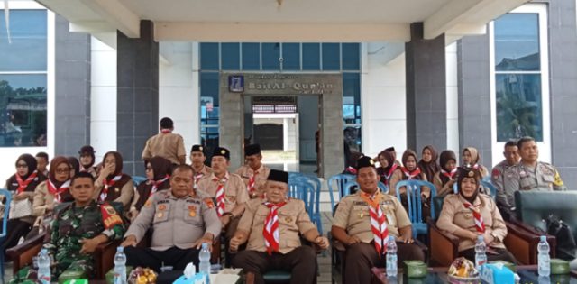 Camat Kayuagung M. Saleh dalam sambutannya mengapresiasi sinergi seluruh pihak, terutama TNI dan Polri, yang turut membina para peserta didik melalui kegiatan pramuka.