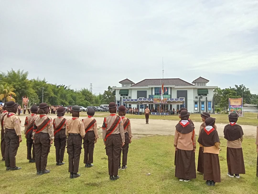 Camat Kayuagung M. Saleh dalam sambutannya mengapresiasi sinergi seluruh pihak, terutama TNI dan Polri, yang turut membina para peserta didik melalui kegiatan pramuka.