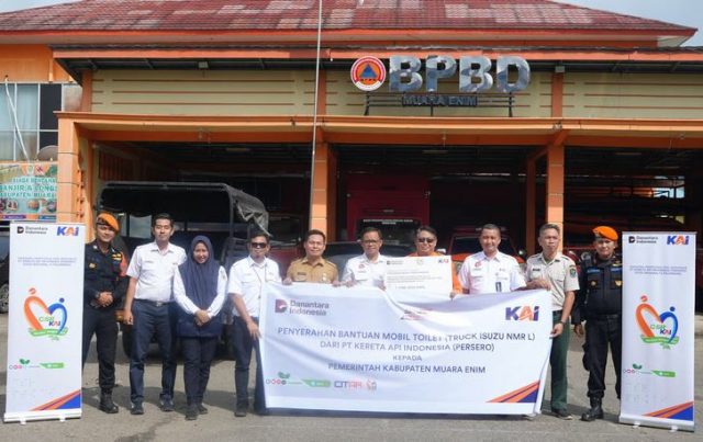 “Komitmen KAI adalah memastikan keberadaan perusahaan memberi dampak positif bagi lingkungan dan masyarakat. Mobil toilet ini menjadi fasilitas penting untuk menjaga kesehatan dan kenyamanan masyarakat, baik saat terjadi bencana maupun pada kegiatan sosial lainnya. Kami berharap fasilitas ini dapat dimanfaatkan secara maksimal oleh Pemkab Muara Enim,”