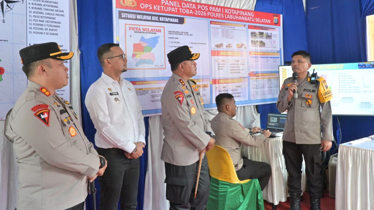 1. Kapolda Sumut Irjen Pol Whisnu Hermawan meninjau Pos Pam di Kota Pinang, Labuhanbatu Selatan dalam Operasi Ketupat Toba 2026.(Foto:Adis/cimutnews.co.id)