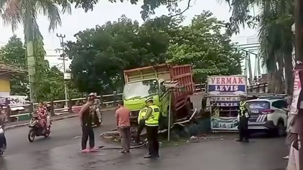 Truk yang melintas dari arah luar kota diduga kehilangan kendali saat memasuki area jembatan, kemudian menghantam pembatas jalan.