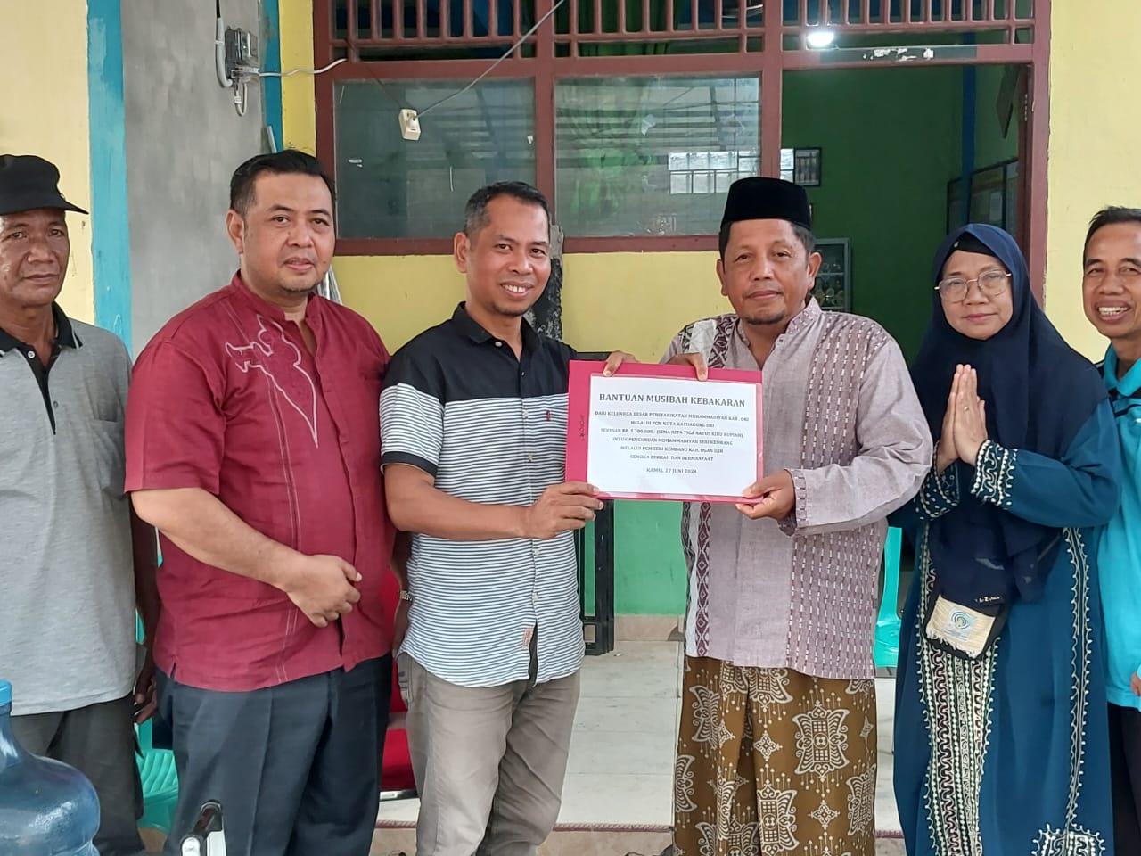 Keluarga Persyarikatan Muhammadiyah Kabupaten Ogan Komering Ilir, melalui PCM Kota Kayuagung menyerahkan Bantuan untuk Musibah Kebakaran di Seri Kembang Ogan Ilir.