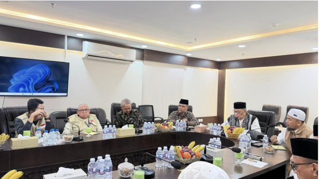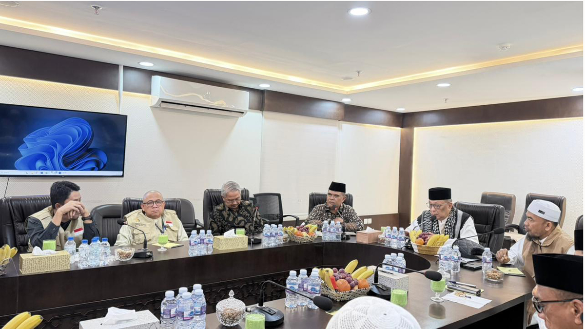 Delegasi disambut oleh Direktur Jenderal Pelayanan Haji Ian Heryawan serta Pembantu Staf Teknis Urusan Haji Indonesia Zakaria Anshori.