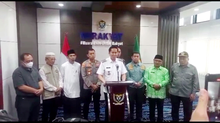CIMUTNews. co.id. Muara Enim – Forkopimda Muara Enim yang dipimpin Plt. Bupati Muara Enim mengadakan konferensi pers untuk membahas dan memberikan penjelasan terkait viralnya berita marawis di Gereja Santo Yosef Tanjung Enim beberapa waktu lalu. Acara ini diselenggarakan di kantor Pemkab Muara Enim, Rabu (26/07/23)