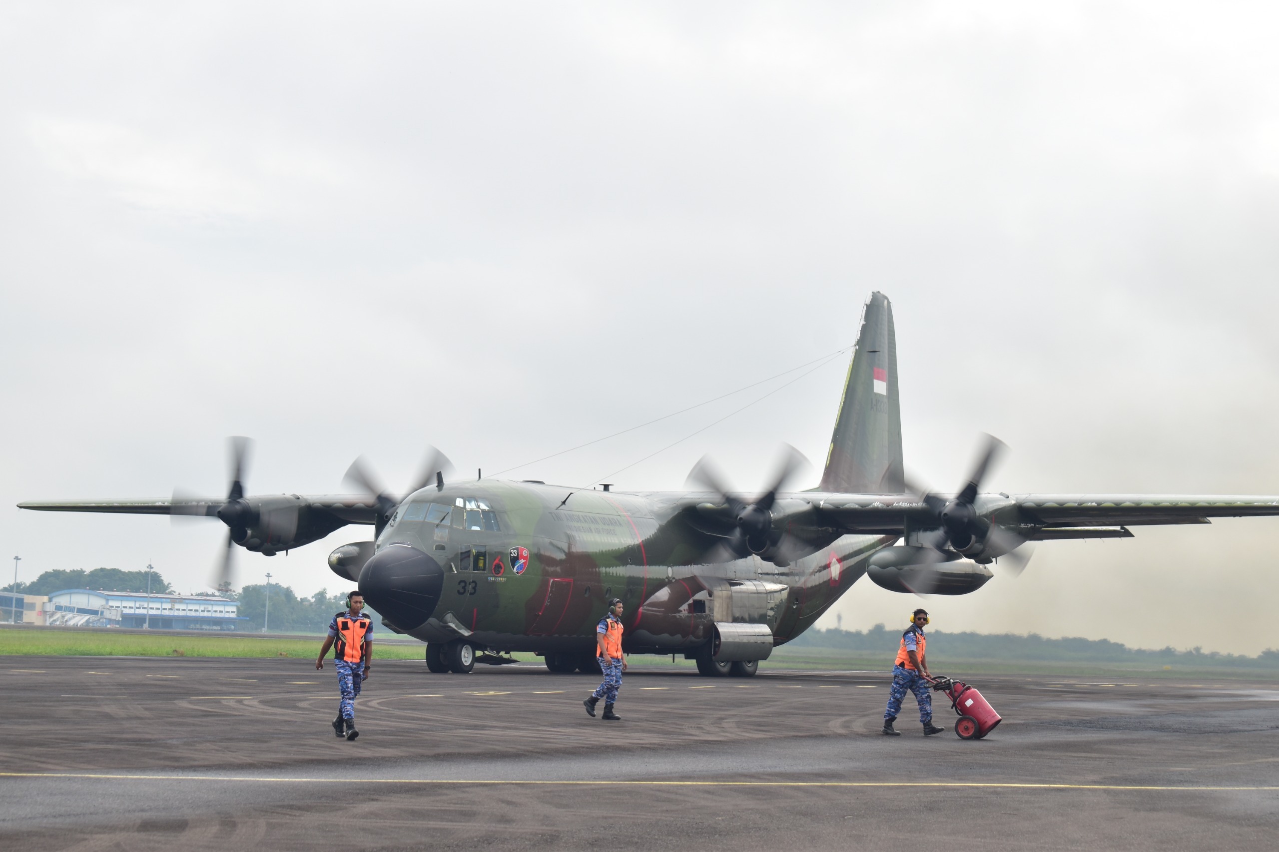 Pesawat Hercules C-130 A-1333 yang digunakan kali ini merupakan pesawat angkut berat andalan TNI AU dari Skadron Udara 33 Lanud Sultan Hasanuddin Makassar, yang dikenal memiliki kemampuan manuver dan daya angkut besar untuk misi-misi kemanusiaan.