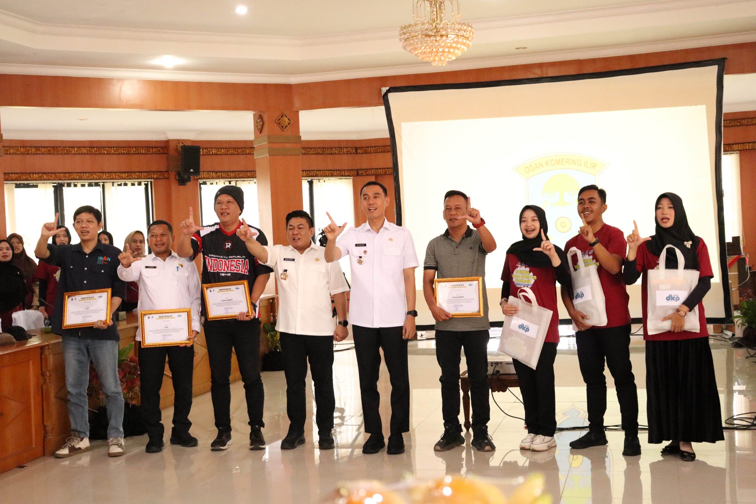 Apresiasi, Edukasi, dan Kolaborasi, Bupati OKI menyerahkan piagam penghargaan secara simbolis kepada para narasumber dan dewan juri, serta membagikan seminar kit dan atribut peserta