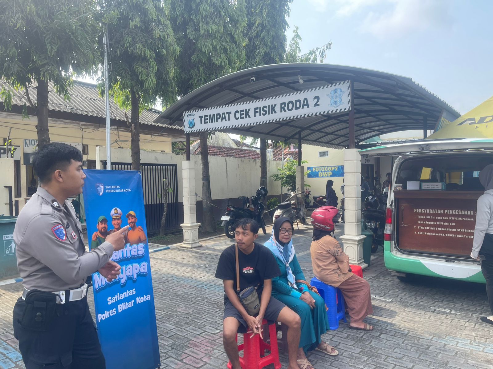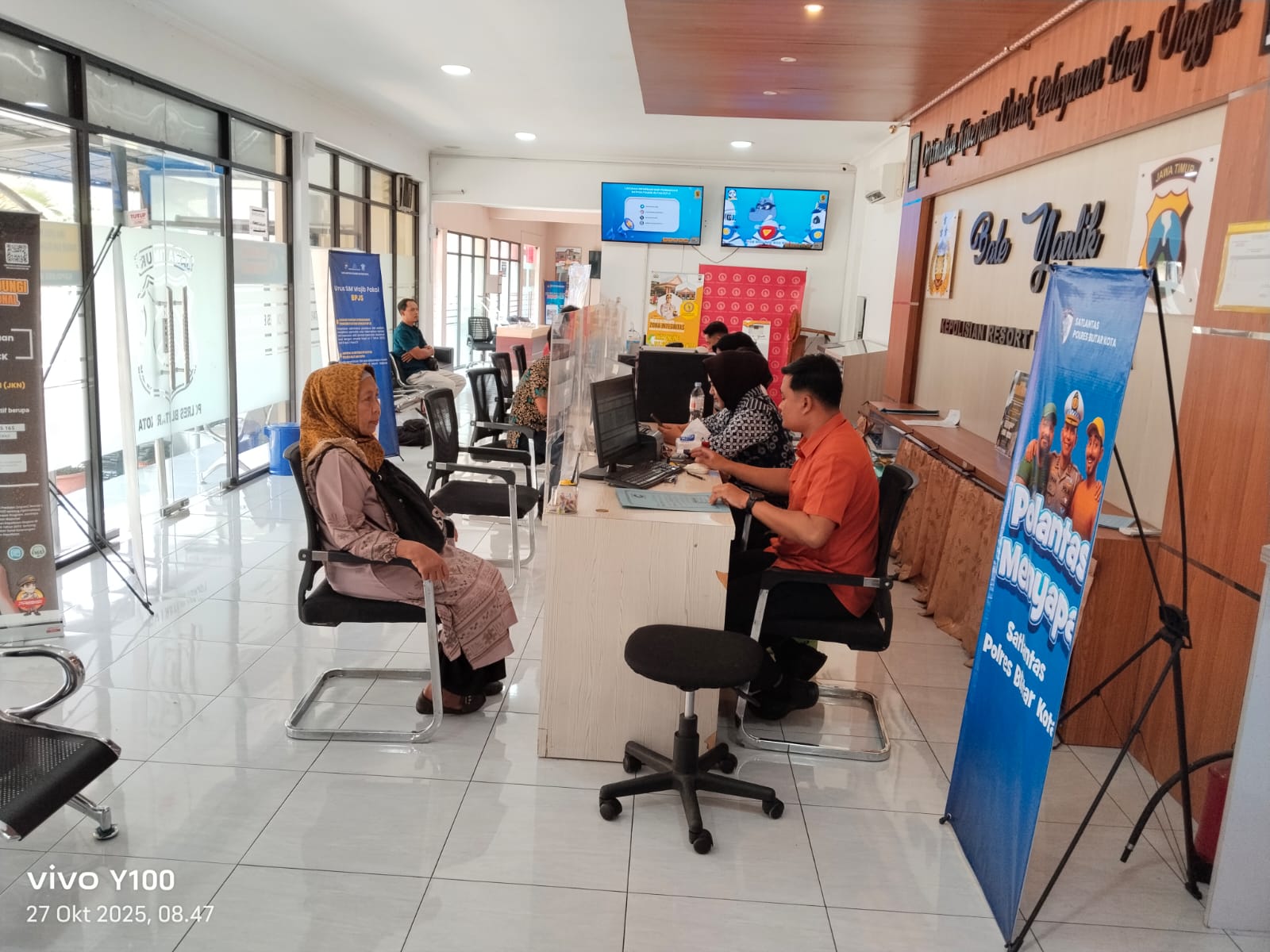 Blitar,Cimutnews.co.id, – Kasat lantas polres kota Blitar melalui Kasi Humas polres kota Blitar IPTU Samsul Anwar menyampaikan, Petugas pelayanan Satpas dan Samsat Satlantas Polres Blitar Kota melalui Program Polantas Menyapa memberikan pelayanan dan penyuluhan kepada masyarakat tentang standart pelayanan di samsat berdasarkan jenis dan Tarif PNBP yang berlaku, Senin (03/11/2025)