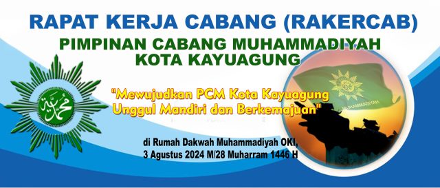 cimutnews.co.id. Kayuagung – Pimpinan Cabang Muhammadiyah Kota Kayuagung akan menggelar Rakercab di Rumah Dakwah Muhammadiyah OKI. Rakercab yang pertama kali digelar ini akan diikuti semua unsur PCM Kota Kayuagung, dengan tema “mewujudkan PCM Kayuagung unggul, mandiri dan berkemajuan”, pada hari Sabtu, 28 Muharram 1446 H atau bertepatan pada tanggal 3 Agustus 2024 M.