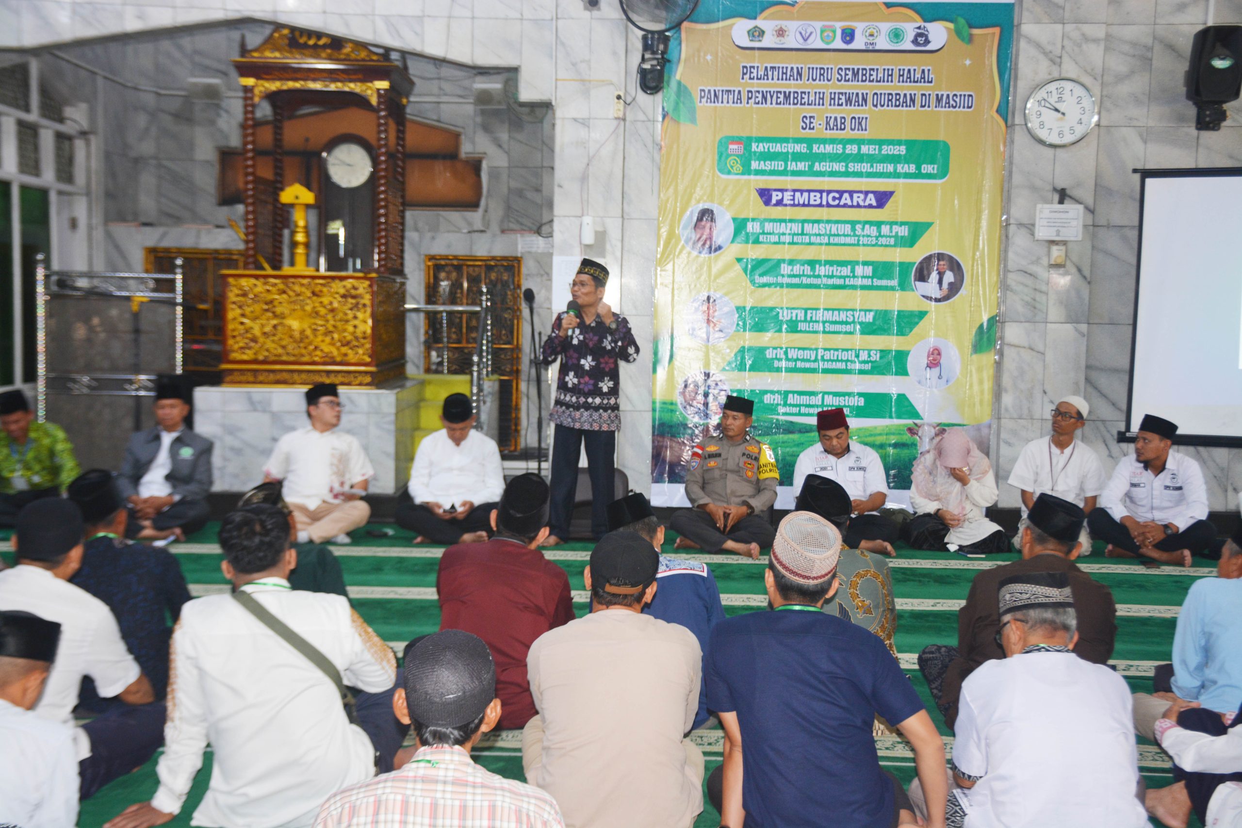Ogan Komering Ilir, Cimutnews.co.id – Dalam rangka menyambut Idul Adha 1446 H dan memastikan pelaksanaan penyembelihan hewan qurban sesuai syariat Islam serta standar kesehatan, Dewan Masjid Indonesia (DMI) Kabupaten Ogan Komering Ilir menggelar Pelatihan Juru Sembelih Halal (Juleha) di Masjid Agung Sholihin, Kayuagung, pada Kamis, 29 Mei 2025.