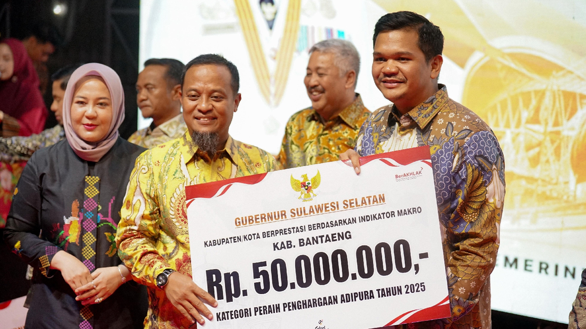BANTAENG, cimutnews.co.id — Penghargaan Adipura 2025 kembali mengangkat nama Kabupaten Bantaeng setelah pemerintah daerah ini menerima apresiasi berupa dana Rp50 juta dari Pemerintah Provinsi Sulawesi Selatan, Minggu (29/3). Penghargaan tersebut diserahkan langsung oleh Andi Sudirman Sulaiman kepada Bupati Bantaeng, M. Fathul Fauzy Nurdin, di Rumah Jabatan Gubernur Sulsel.