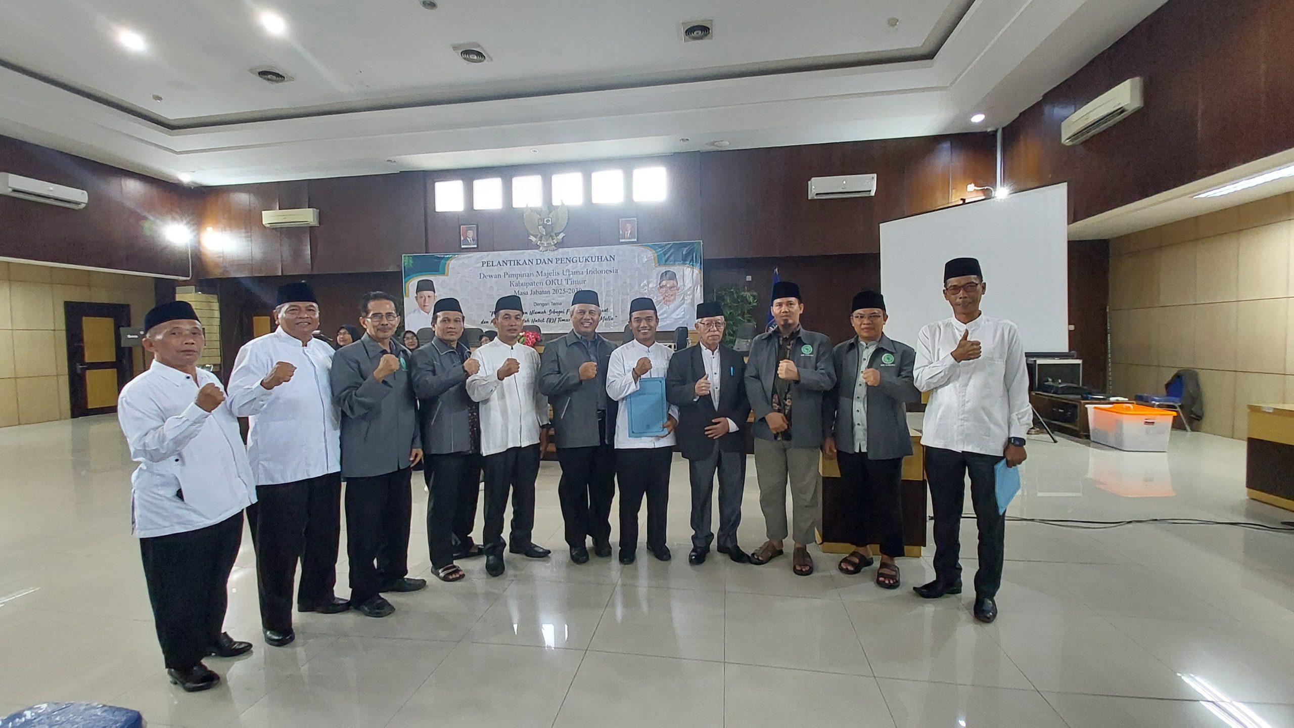 OKU Timur, cimutnews.co.id – Majelis Ulama Indonesia (MUI) Kabupaten Ogan Komering Ulu Timur resmi dikukuhkan untuk masa jabatan 2025–2030 setelah keluarnya Surat Keputusan Dewan Pimpinan MUI Provinsi Sumatera Selatan Nomor: KEP.08/MUI-SS/XII/2025 tentang Pengesahan dan Pengukuhan Dewan Pimpinan MUI OKU Timur. Prosesi pelantikan berlangsung khidmat di Aula Bina Praja 1 Setda OKU Timur, Selasa (23/12/2025), dengan mengusung tema “Penguatan Peran Ulama sebagai Pembimbing Umat dan Mitra Pemerintah untuk OKU Timur Maju Lebih Mulia.”