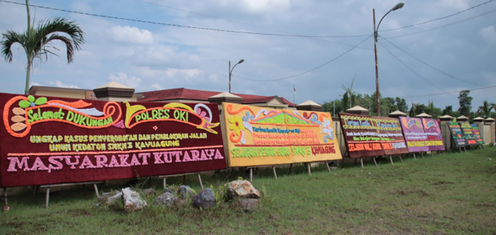 Polres OKI Dibanjiri Puluhan Karangan Bunga, Apresiasi Buka Blokir Jalan Umum