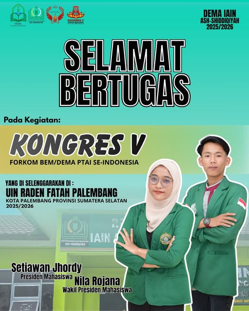 CimutNews.co.id — Semangat baru kembali hadir dari kalangan mahasiswa Institut Agama Islam Negeri (IAIN) Ash-Shiddiqiyah Ogan Komering Ilir (OKI). Dua perwakilan terbaik kampus, Setiawan Jhordy (Presiden Mahasiswa) dan Nila Rojana (Wakil Presiden Mahasiswa), resmi mengikuti Kongres V Forum Komunikasi Badan Eksekutif Mahasiswa/Dewan Eksekutif Mahasiswa Perguruan Tinggi Agama Islam (FORKOM BEM/DEMA PTAI) se-Indonesia, yang diselenggarakan di UIN Raden Fatah Palembang, Provinsi Sumatera Selatan.