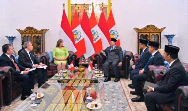 Jakarta, cimutnews.co.id – Presiden Republik Indonesia, Prabowo Subianto, menerima kunjungan kenegaraan Presiden Republik Peru, Dina Ercilia Boluarte Zegarra, dalam pertemuan tête-à-tête di Istana Merdeka, Jakarta, Senin (11/8/2025).