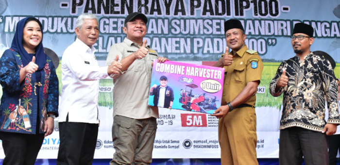 Sementara Gubernur Sumsel H. Herman Deru mengapreasi peningkatan produksi padi di Kabupaten OKI. Menurut Gubernur Deru, hasil ini sudah setara dengan daerah lumbung beras nasional.
