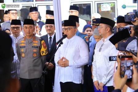Gubernur Sumatera Selatan, Herman Deru, dalam amanatnya juga mengajak masyarakat untuk memberikan doa terbaik.