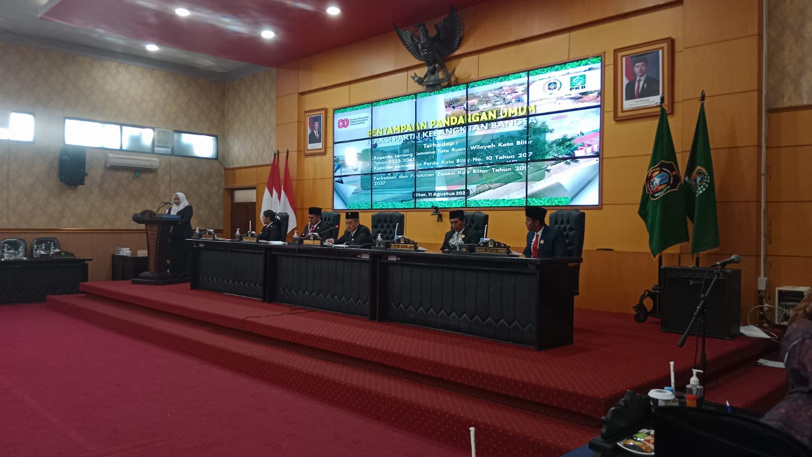 Dewan Perwakilan Rakyat Daerah (DPRD) Kota Blitar menggelar Rapat Paripurna dengan agenda penyampaian pandangan umum fraksi-fraksi terhadap Rancangan Peraturan Daerah (Ranperda) tentang Rencana Tata Ruang Wilayah (RTRW) Kota Blitar Tahun 2025–2045