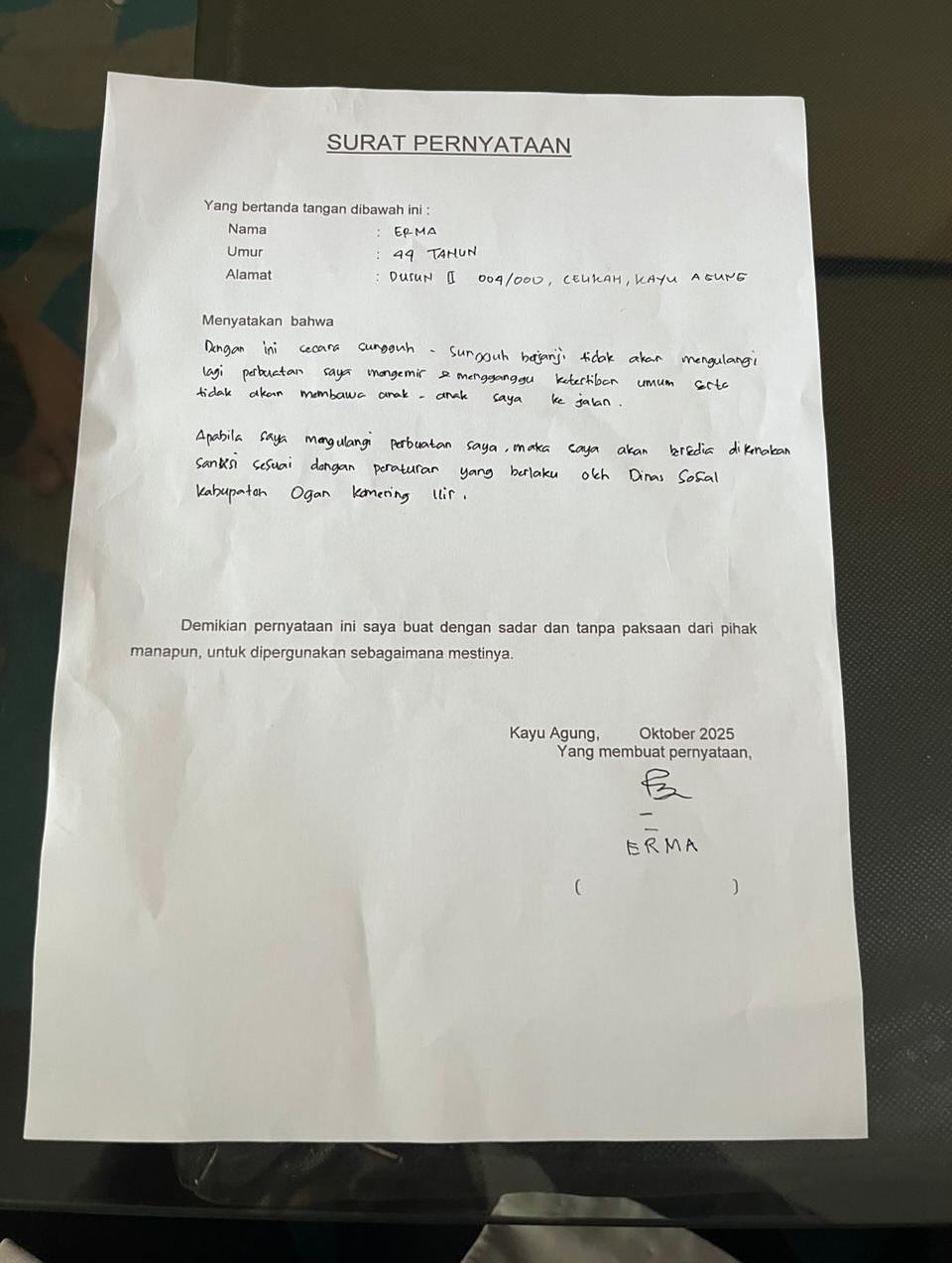“Mereka kami minta membuat surat pernyataan secara tertulis sebagai bentuk komitmen pribadi. Kami juga mengingatkan agar tidak kembali ke jalan dan tidak melibatkan anak-anak untuk mencari uang dengan cara yang tidak layak,” tambahnya.