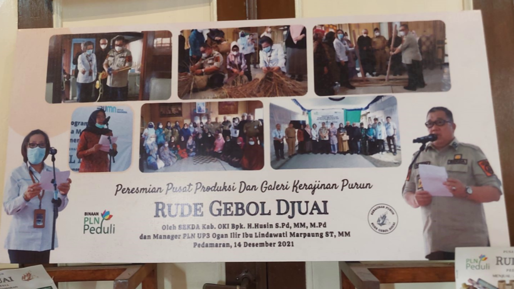 Keseriusan masyarakat OKI dalam menjaga warisan ini diwujudkan pada 14 Desember 2021, ketika Pusat Produksi dan Galeri Kerajinan Purun RUDE GEBOL DJUAI resmi diresmikan. Acara tersebut dihadiri oleh Sekretaris Daerah OKI, H. Husin, S.Pd., MM., M.Pd., serta Manager PLN UP3 Ogan Ilir, Lindawati Marpaung, ST., MM.