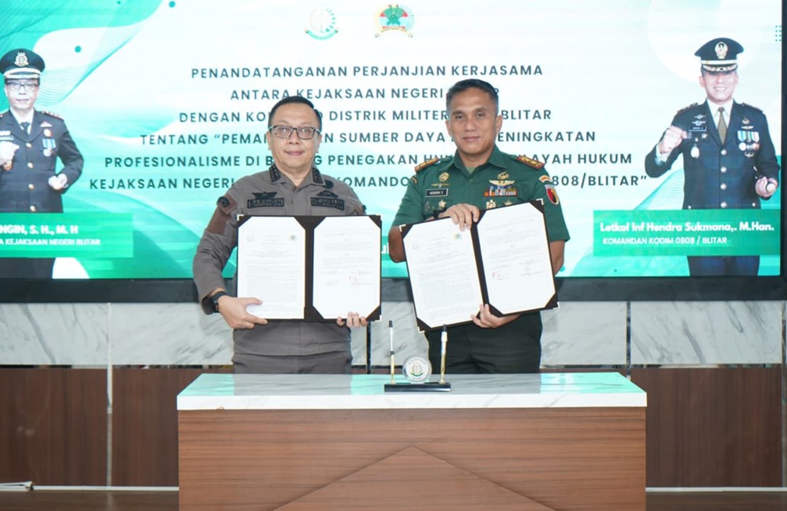 Kejaksaan Negeri Blitar dan Kodim 0808/Blitar melaksanakan penandatanganan perjanjian kerjasama (PKS) pada Kamis (31/7/2025)