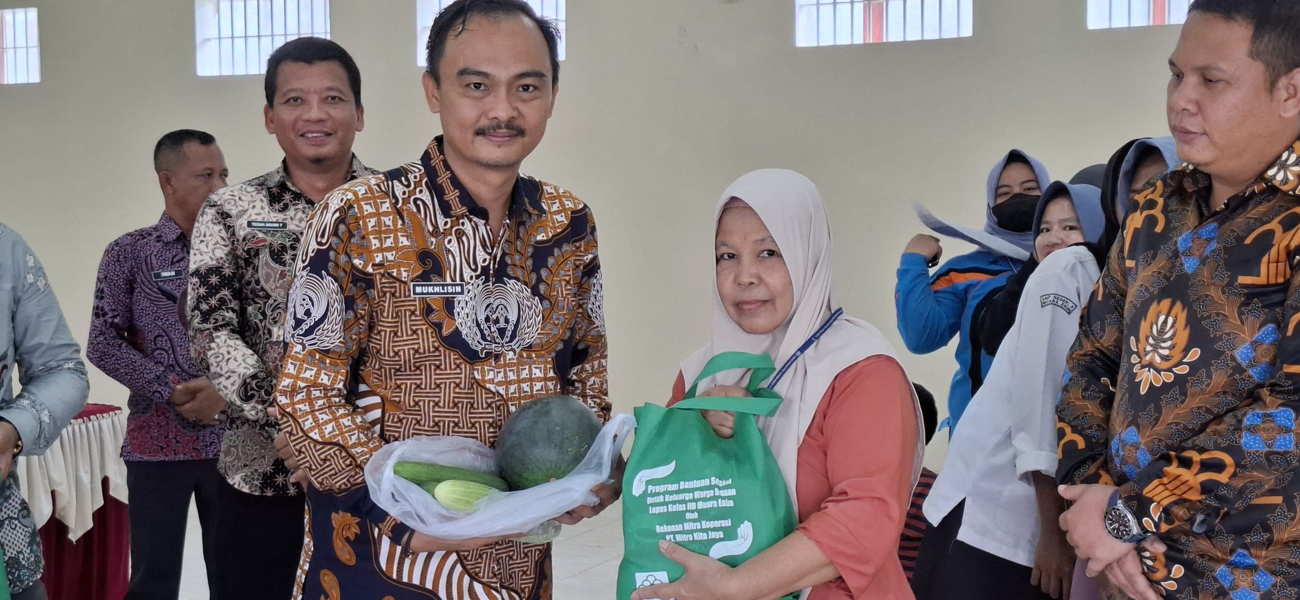 “Selain bantuan social kami juga membagikan hasil panen program kemandirian Lapas Muara Enim berupa Timun dan buah Semngka”.ujarnya