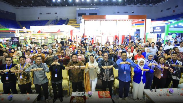 Gubernur Sumatera Selatan, Herman Deru, mengajak pelaku UMKM meningkatkan kemampuan teknologi informasi (IT) saat membuka pameran IFBC 2026 di Palembang Sport and Convention Center (PSCC), Jumat (17/4/2026).
